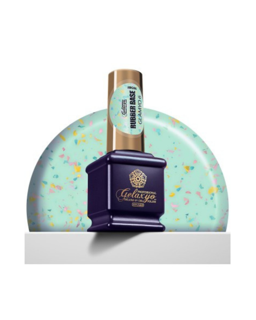 GELAXYO RUBBER BASE GLAMYO 06 este baza rubber perfectă pentru sezonul cald sau pentru momentele în care vrei să-ți exprimi feminitatea. Îți spunem doar atât: strat pastelat cu fulgi aurii, turcoaz și roz. Dacă primăvara te inspiră, să știi că această bază face parte dintr-o colecție cu 12 culori pastel.