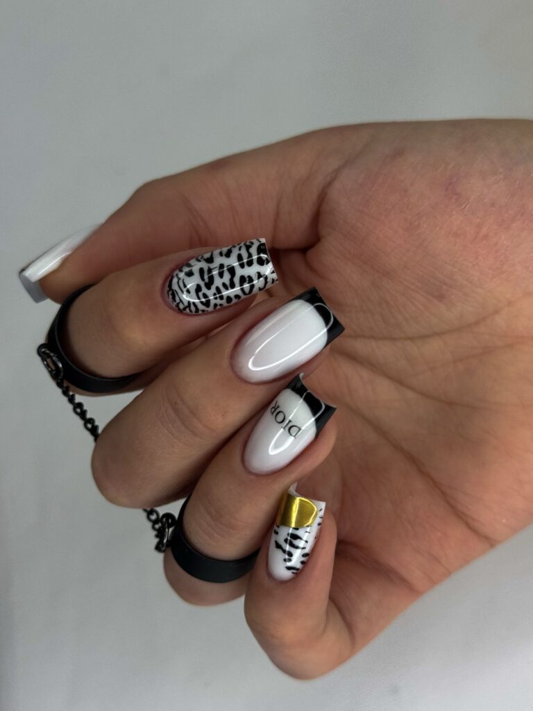 Dacă vrei să transmiți încredere și stil, atunci trebuie să-ți porți unghiile așa! Alege un model de unghii negre cu auriu și poartă-l la evenimente elegante sau zilnic, în sezonul festiv.