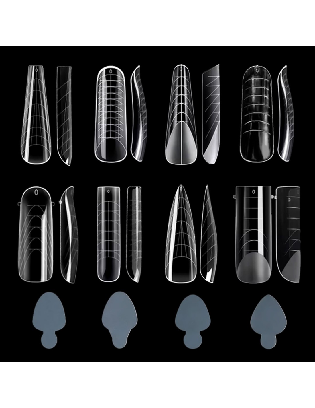 Set de 288 piese ce contine 8 modele de tipsuri flexibile, reutilizabile și 4 modele de paduri din silicon pentru trasarea precisă a negativului liniei de french în interiorul tipsurilor, fiecare model în câte 12 mărimi, livrate la cutie compartimentată.
