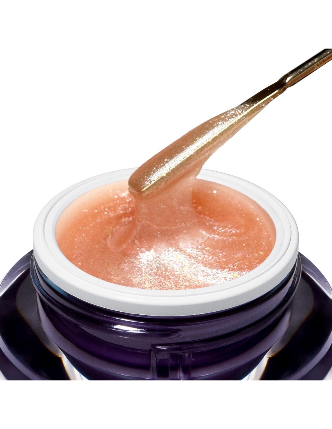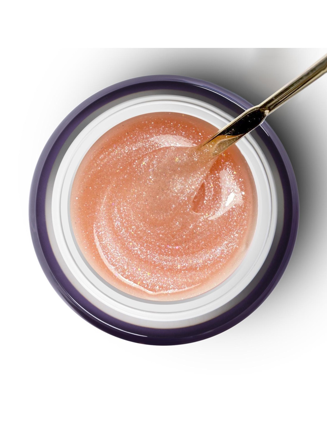 🌸 culoare nude-piersică cu sclipici fin argintiu și irizați multicolore