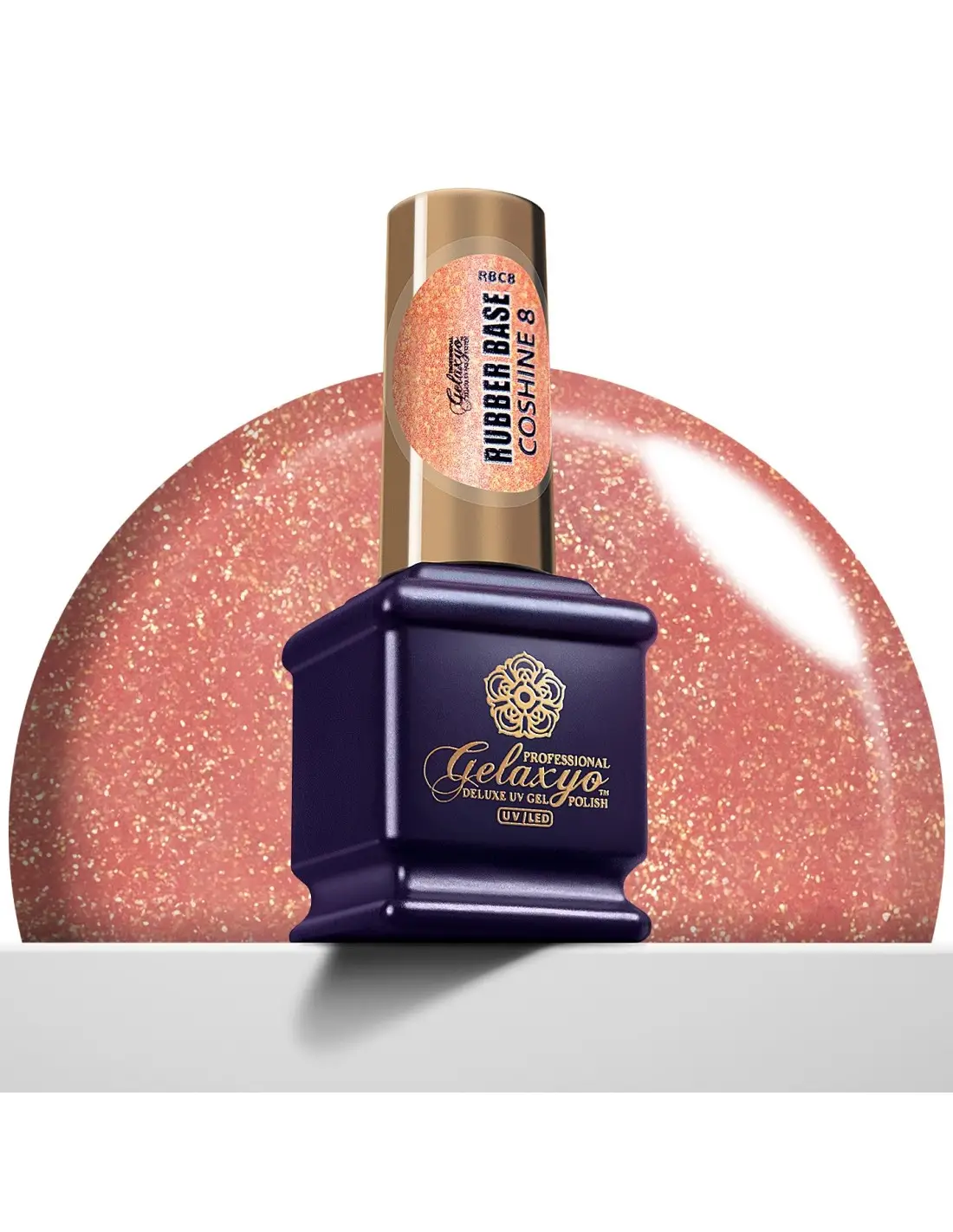 Gelaxyo Rubber Base Coshine 8 este o bază care îmbină eleganța sclipiciului fin portocaliu cu un efect sidefat subtil, oferind o culoare suavă și delicată unghiilor tale. Formula sa inovatoare nu necesită aplicarea unei alte baze în prealabil, precum și modelarea cu ușurință a apexului, simplificând modul de aplicare.