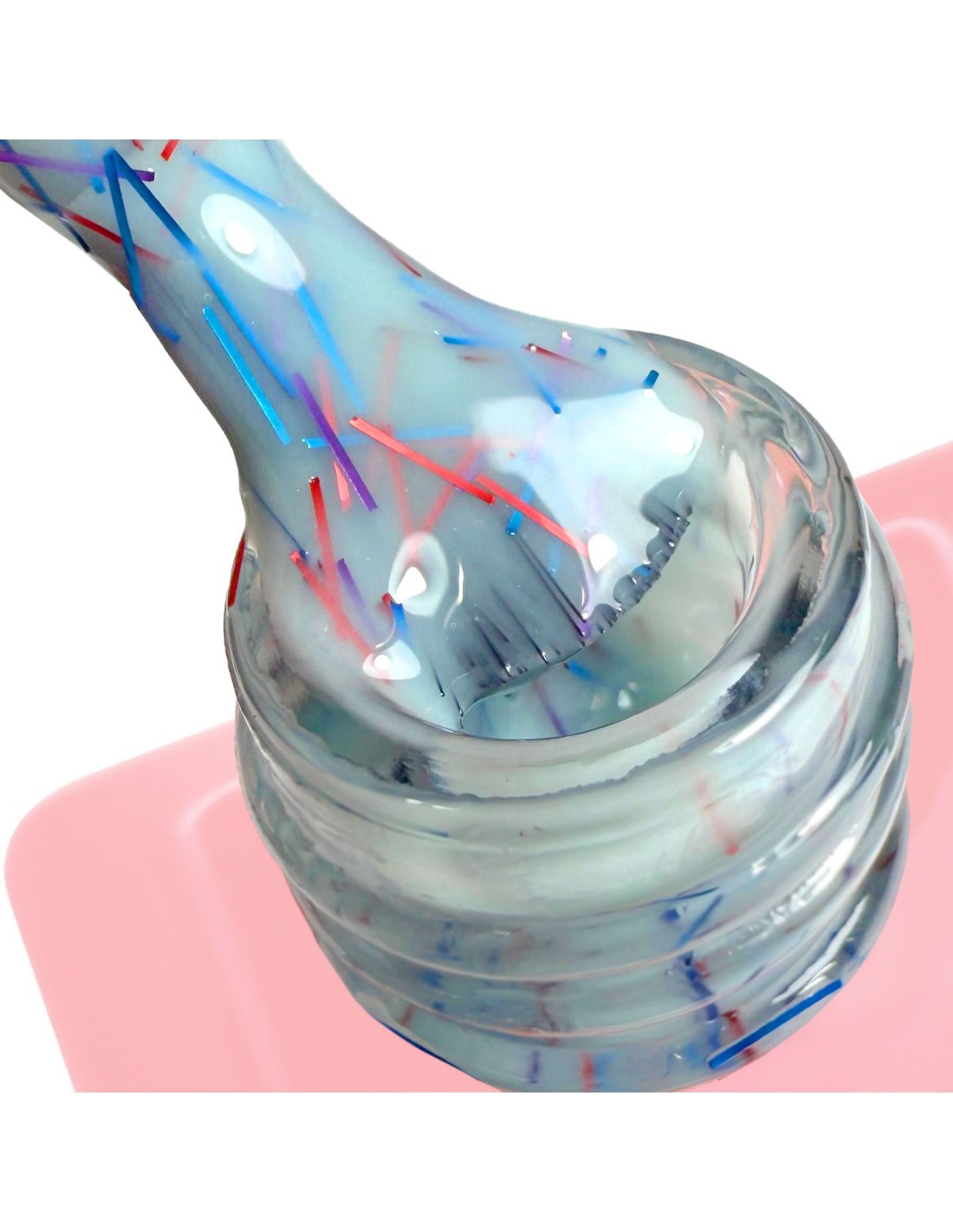 Transformă orice manichiură într-o adevărată sărbătoare cu Gelaxyo Rubber Base Party 🎉 — baza cu confeti multicolore care aduce instant bucurie și stil unghiilor tale! Formula sa autonivelantă, cu vâscozitate medie, permite modelarea precisă a apexului fără a curge spre cuticule, oferind un control perfect la aplicare!