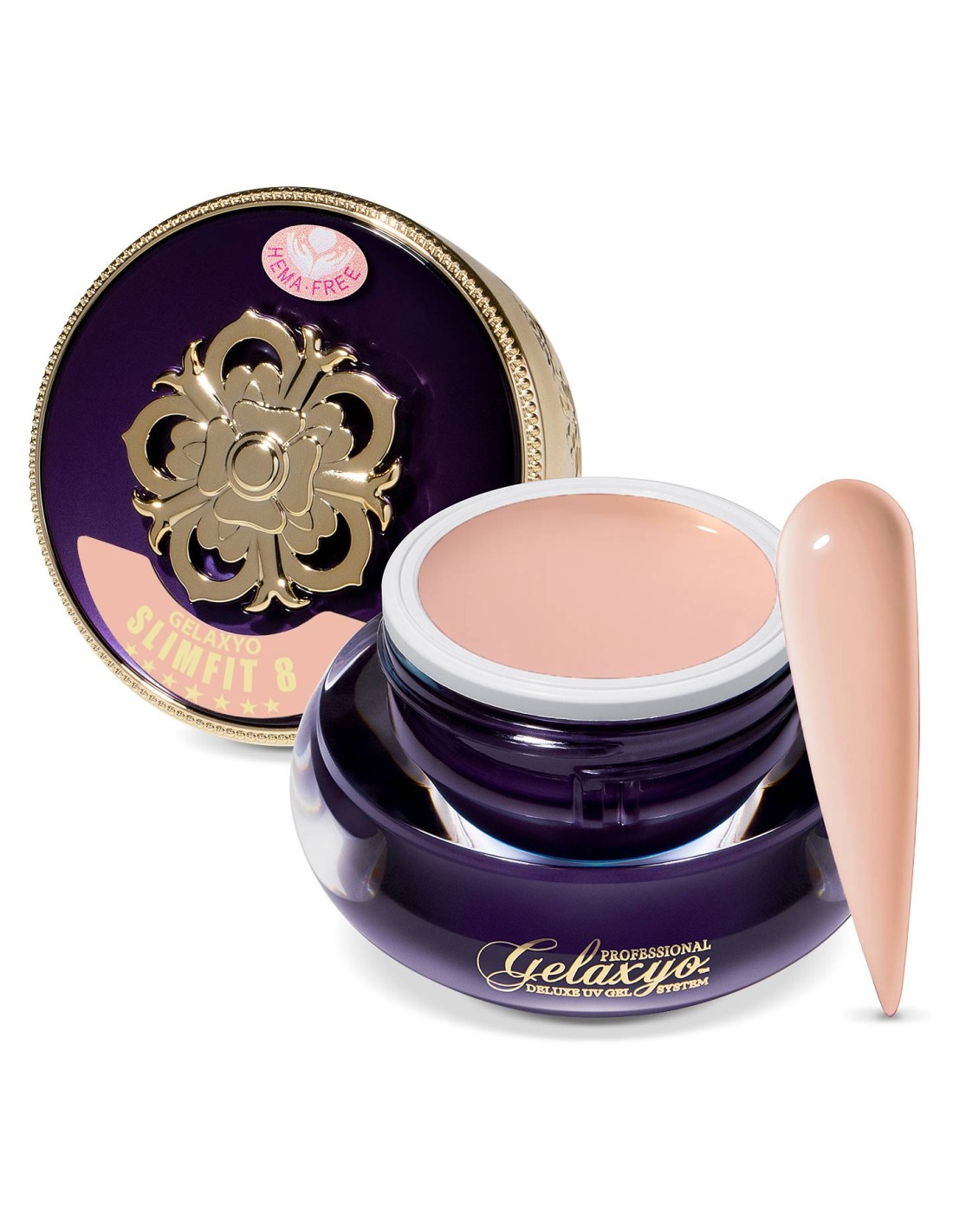 Grație texturii sale unice, GELAXYO SLIMFIT este deosebit de potrivit pentru tehnica manichiurii fără pilire, permițând tehnicienilor de unghii să economisească timp prețios, fără a compromite calitatea sau durabilitatea manichiurii. În plus, conform denumirii sale, gelul SLIMFIT este optimizat pentru a complementa tendința unghiilor "Slim", oferind o bază solidă și armonioasă pentru un look elegant și subtil.