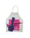 Șorț din material impermeabil, de culoare bej cu roz pentru protecția hainelor de praful rezultat la pilire.