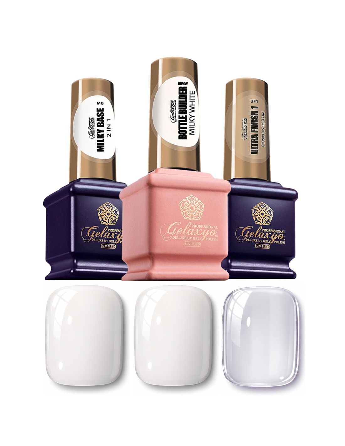Pachetul GELAXYO MILKY SET B – pentru alb lăptos perfect, rezistență și luciu fără compromis. Un protocol eficient și avantajos pentru reaprovizionare inteligentă de salon.