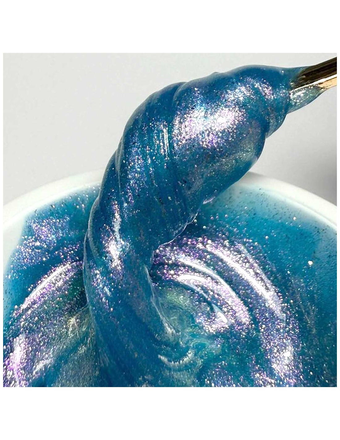 🌸 Culoare albastru cu sclipici fin violet și efect perlat